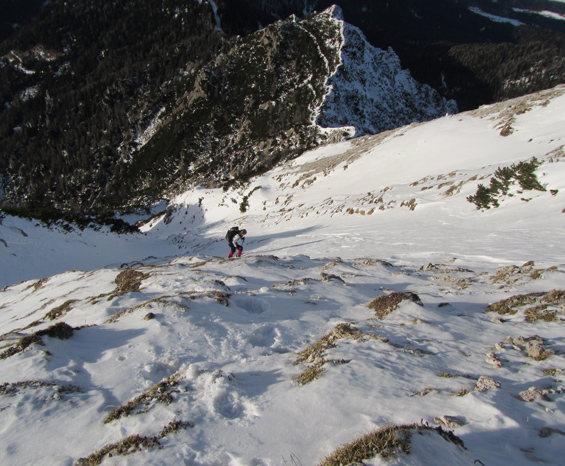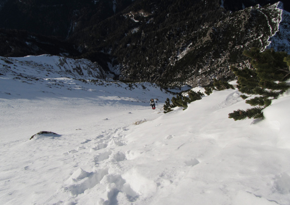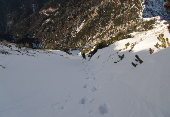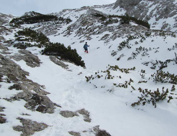 Leto je naokoli in kaj je boljšega kot takoj v hribe. Danes sva se odpravila na Kepo. Iz Ljubljane sva štartala pozno in upal sem, da cesta skozi dolino Belce ni preveč zasnežena. Preveč zasnežena??? Ma ni šans. Cesta sicer je zasnežena, vendar je količina snega majhna in še mehak je. Pripeljala sva se srečno do zapornice. Ta cesta je res nekaj posebnega saj med drugim pelje tik ob globoki soteski. Peljati pa se je treba tudi skozi enosmeren predor v katerem ni luči. Cool. Pripraviva si opremo in že sopihava v hrib. Snega je malo in do planine Jepca in bivaka si ne nadeneva niti gamaš. Pot naju pelje po slemenu do ozkega in ostrega mini grebenčka kjer so jeklenice. Zaradi napihanega snega na grebenčku sva morala biti precej previdna. Srečno ga pustiva za seboj in se rahlo desno povzpneva do plitve grape po kateri se začneva vzpenjati proti vrhu. Snežne razmere lahko opišem kot malce zoprne. Sneg je na nekaterih mestih napihan do kolen, na nekaterih škrta kamen, nekje pa se da vzpenjati celo po špicah derez. Skratka mešane razmere. Na vrhu v družbi štirih planinskih kavk pojeva Mojčino novoletno pecivo “kokosove kocke” ter se napijeva čaja. Čaka naju še spust. Nekaj časa se spuščava po poti nato pa zavijeva v grapo, izbereva globok sneg in se ekspresno spustiva. Uživava v spustu po globokem snegu, prečiva neugoden grebenček, prehodiva čudovito gozdno pot in že sva nazaj pri avtu. Prvi dan letošnjega leta sva tako preživela tam kjer ga preživiva najrajši – v miru in tišini narave. Tudi vam želim čim več podobnih trenutkov v letu 2012.