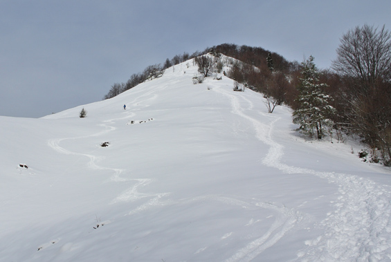 Z Marjanom sva se zjutraj odpravila na Blegoš. Odpeljala sva se do Hotavelj in naprej do vasi Čebrače. Od kmetije v prvem klancu je bilo hoja s smučmi onemogočena, kajti ni bilo dovolj snega. 300 višinskih metrov višje pa se je snežna podlaga oddebelila in končno sem lahko začel hoditi s smučmi. Sneg je bil suh in ne najbolje sprijet s podlago. Do vrha se nama je pridružil še lokalni planinec in hitro smo jo šibali proti vrhu. Na vrhu je bilo precej mrzlo a na srečo ni močno pihalo. Spust z vrha lahko uvrstim v rubriko “vriskanje”. Spust po nedotaknjenem pršiču, ki pa je bil bolj kratek. Sledilo je “lomastenje” po gozdu in na koncu še dva spusta po strmih pašnikih s pršičem. Bilo je kratko ampak uživaško. Aja, pa še gamse sva srečala. Pridejo nižje, da lahko jedo travo.